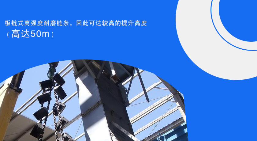 3、板鏈式高強度耐磨鏈條,因此可達較高的提升高度(高達50m)。